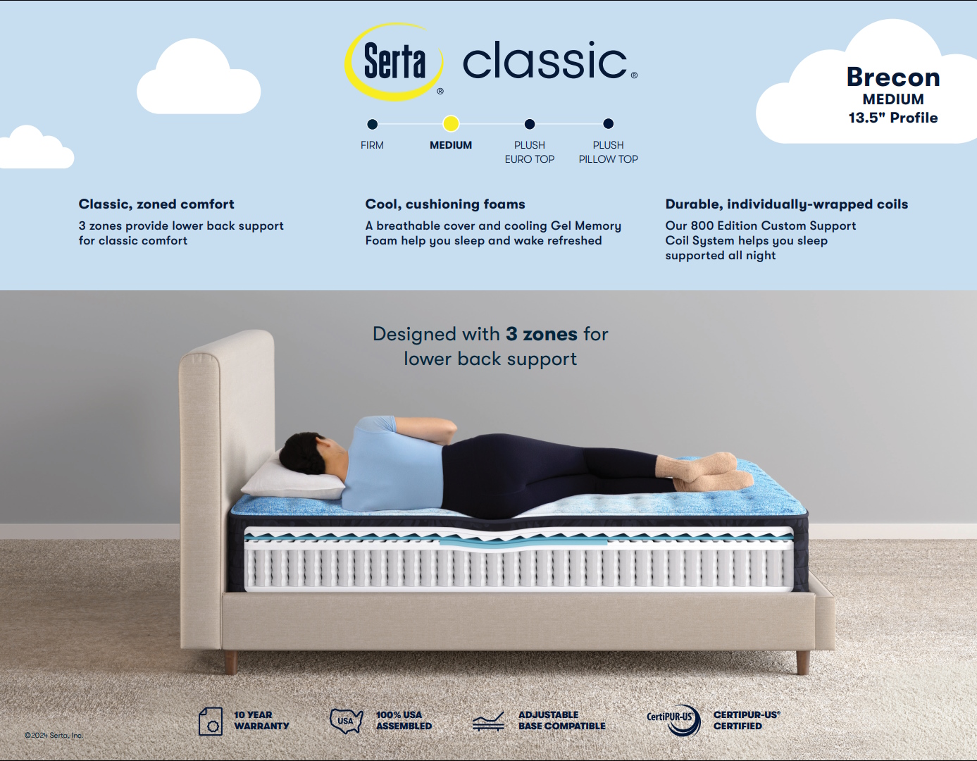 The Serta Classic Brecon Medium Mattress features 3 support zones for lower back support.