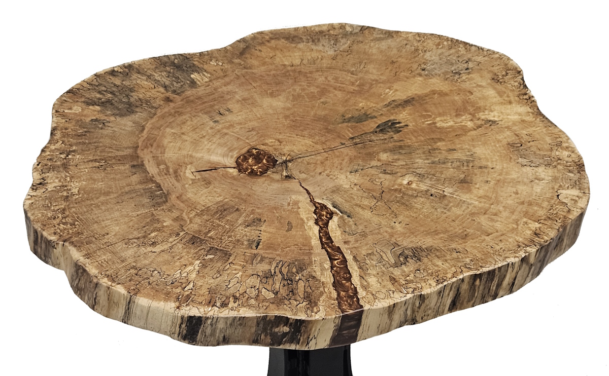Spalted Maple Round Live Edge Top with Metal Eclipse Base with Black Powder Coat Finish